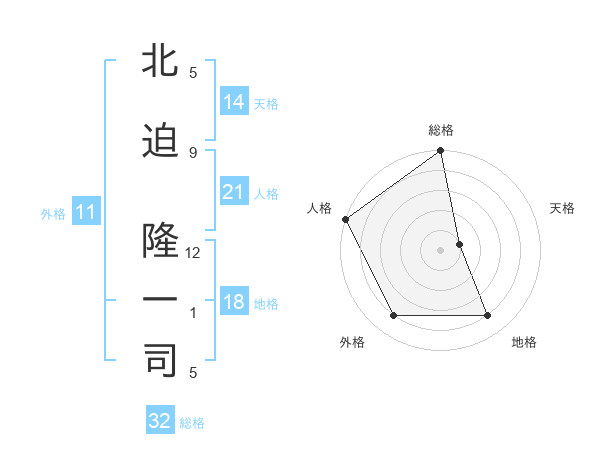 北迫 隆一司さんを姓名の画数から五運を鑑定
