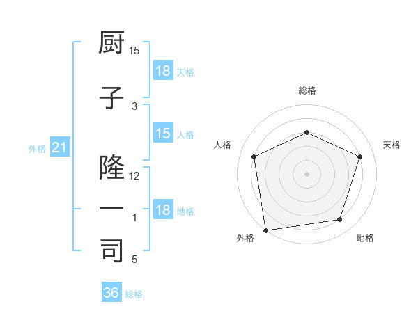 厨子 隆一司さんの外格は21画の5点!