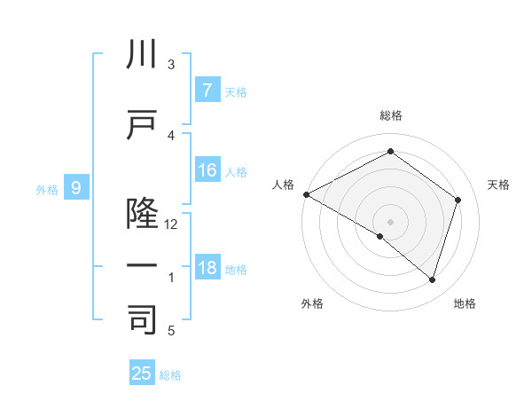 川戸 隆一司さんを姓名の画数から五運を鑑定