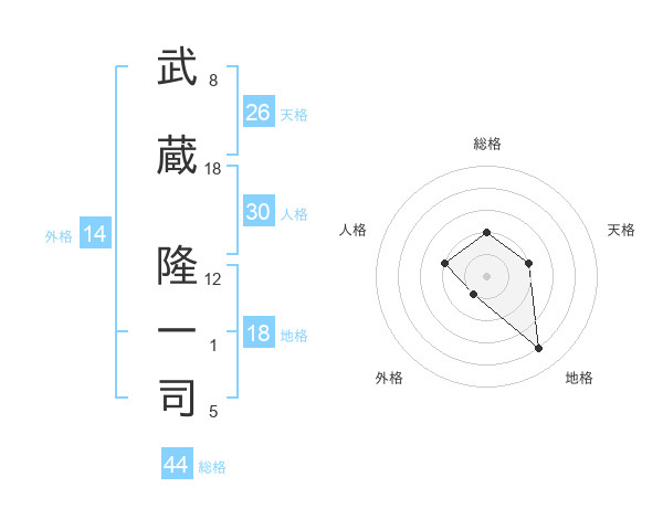 武蔵 隆一司さんを姓名の画数から五運を鑑定