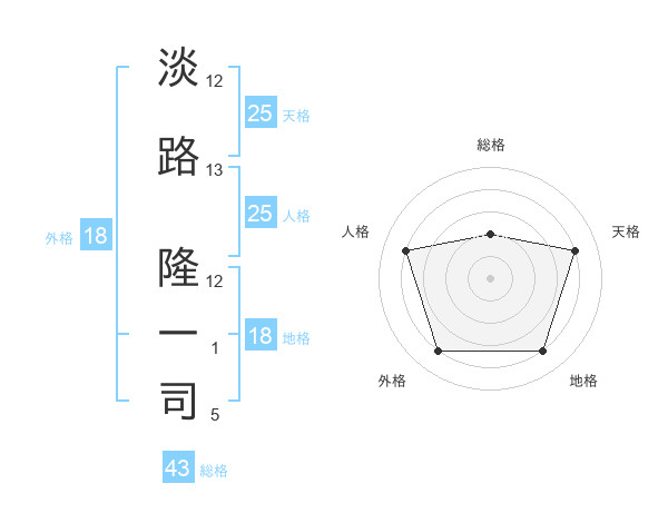 淡路 隆一司さんを姓名の画数から五運を鑑定