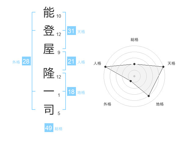 能登屋 隆一司さんを姓名の画数から五運を鑑定