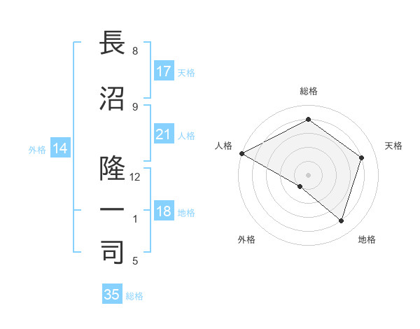 長沼 隆一司さんを姓名の画数から五運を鑑定