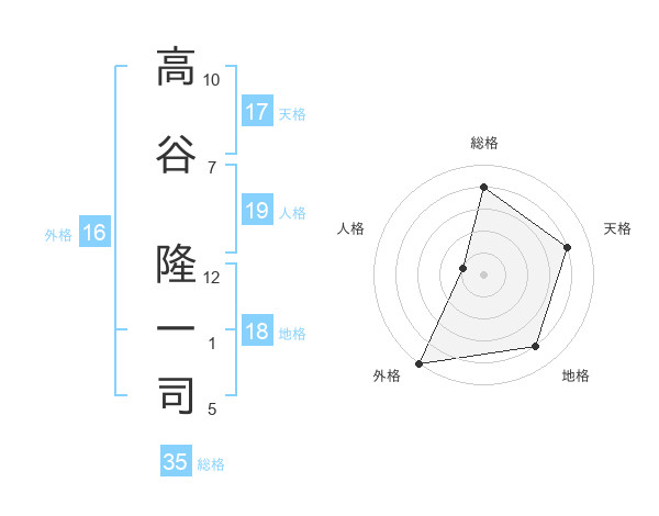 高谷 隆一司さんを姓名の画数から五運を鑑定