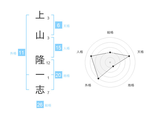上山 隆一志さんを姓名の画数から五運を鑑定