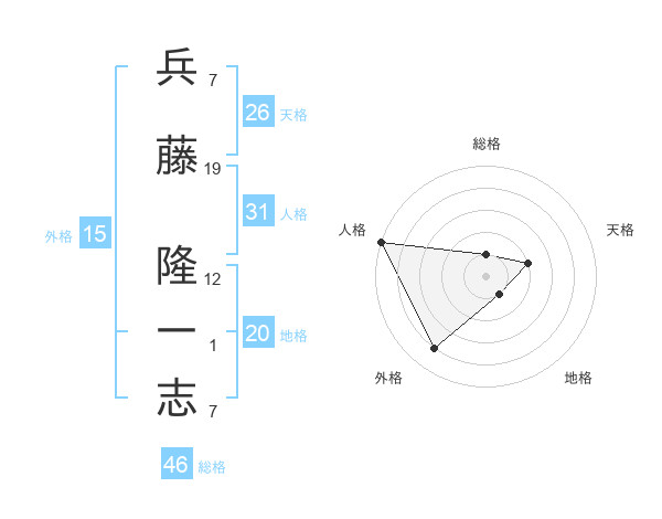 兵藤 隆一志さんを姓名の画数から五運を鑑定