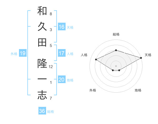 和久田 隆一志さんを姓名の画数から五運を鑑定