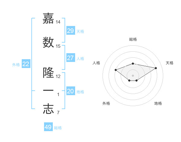 嘉数 隆一志さんの総格は49画の2点!
