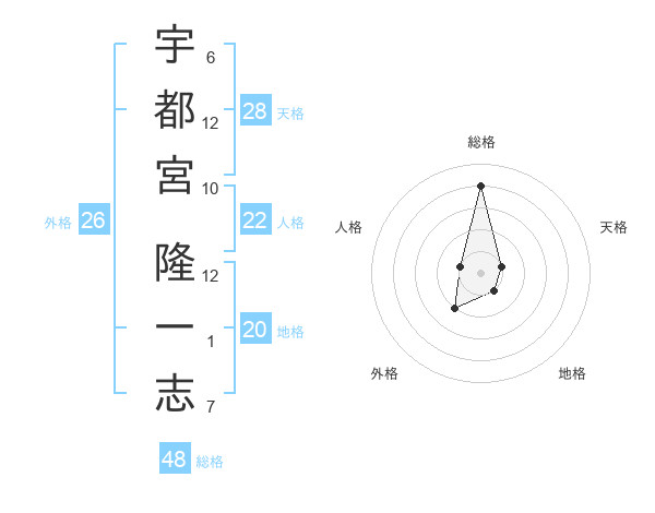 宇都宮 隆一志さんを姓名の画数から五運を鑑定