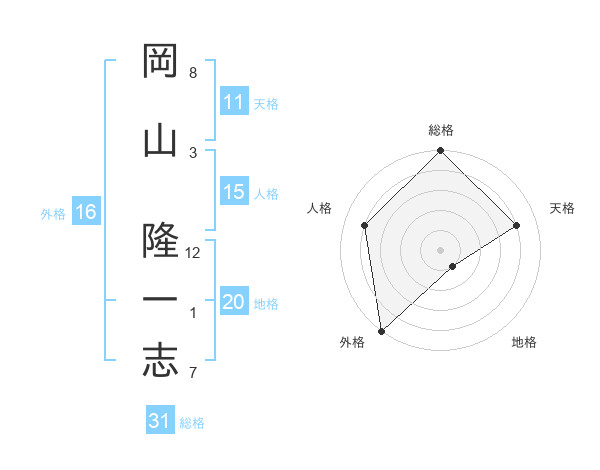 岡山 隆一志さんを姓名の画数から五運を鑑定