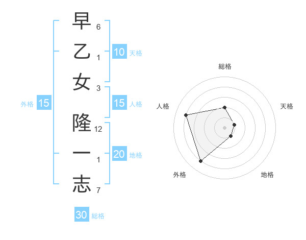 早乙女 隆一志さんを姓名の画数から五運を鑑定