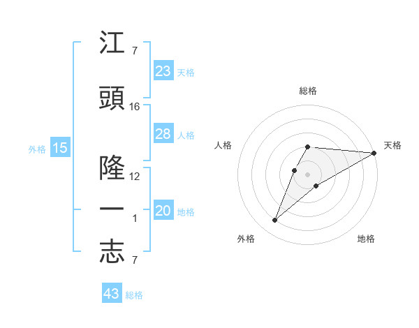 江頭 隆一志さんを姓名の画数から五運を鑑定