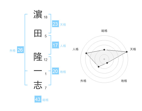 濵田 隆一志さんの天格は23画の5点!