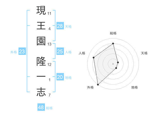現王園 隆一志さんの外格は23画の5点!