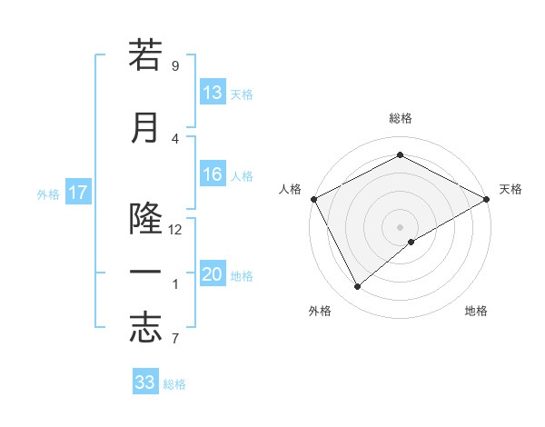 若月 隆一志さんを姓名の画数から五運を鑑定