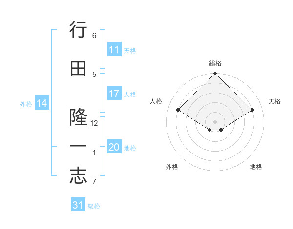 行田 隆一志さんの総格は31画の5点!