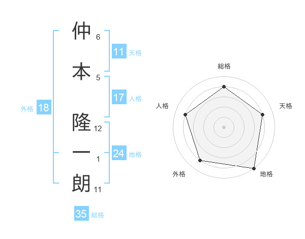 仲本 隆一朗さんを姓名の画数から五運を鑑定