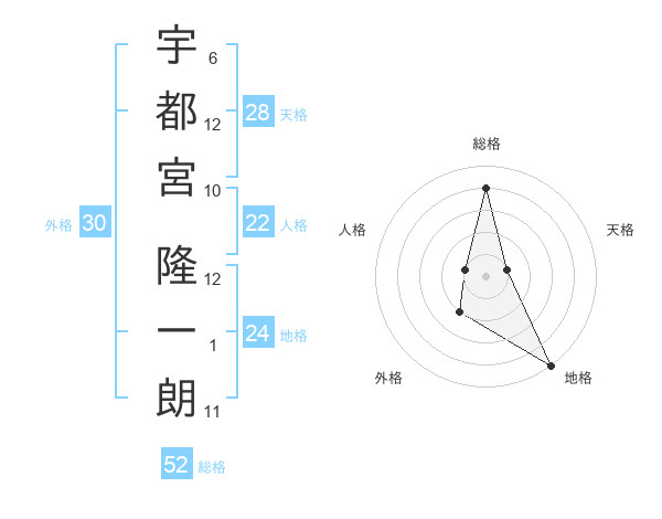 宇都宮 隆一朗さんを姓名の画数から五運を鑑定
