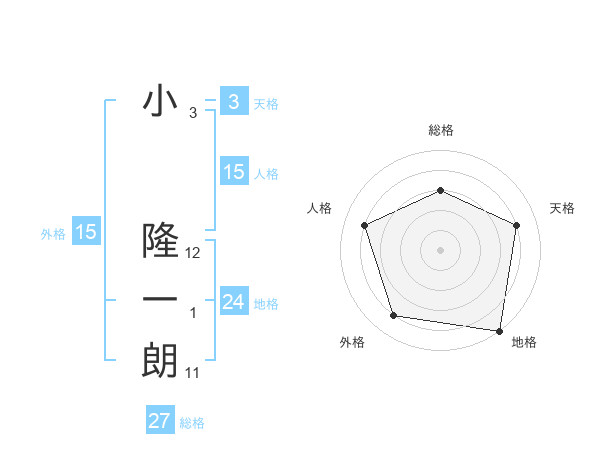 小 隆一朗さんの総格は27画の3点!