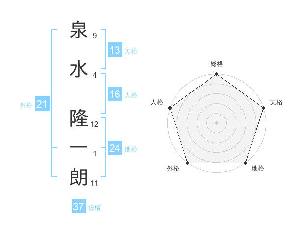 泉水 隆一朗さんを姓名の画数から五運を鑑定