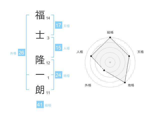 福士 隆一朗さんを姓名の画数から五運を鑑定