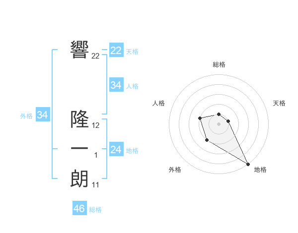 響 隆一朗さんの天格は22画の1点!