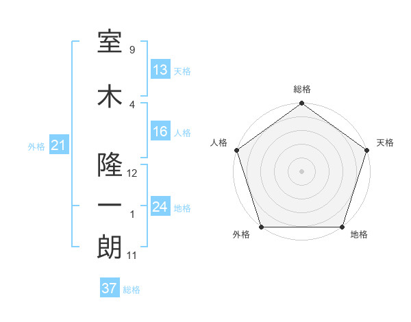 室木 隆一朗さんの総格は37画の5点!