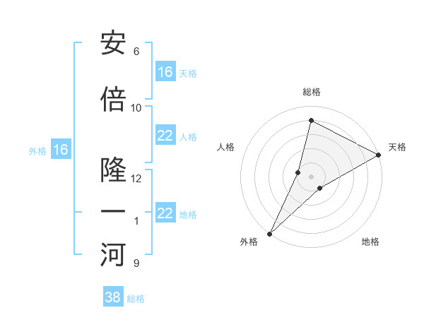 安倍 隆一河さんを姓名の画数から五運を鑑定