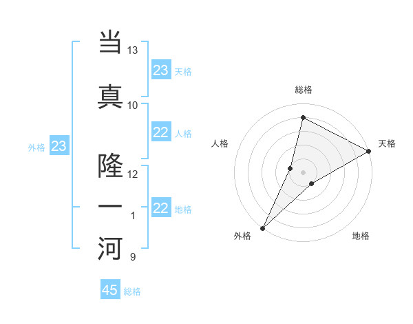 当真 隆一河さんの外格は23画の5点!