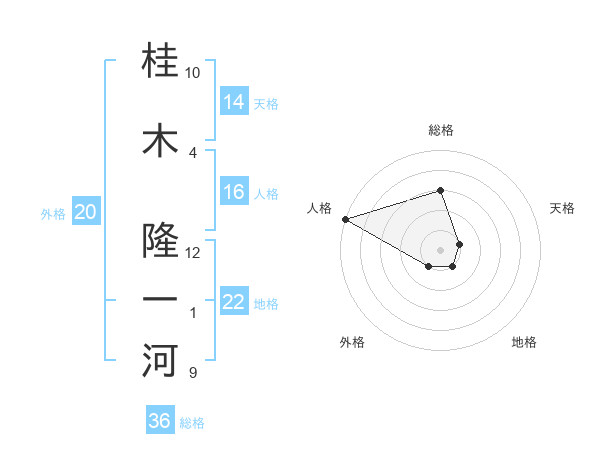 桂木 隆一河さんを姓名の画数から五運を鑑定