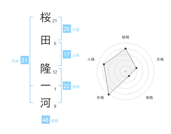 桜田 隆一河さんを姓名の画数から五運を鑑定