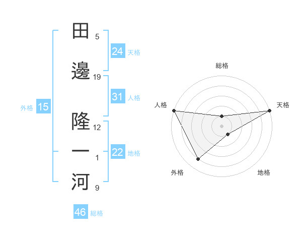 田邊 隆一河さんを姓名の画数から五運を鑑定