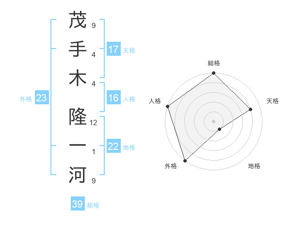 茂手木 隆一河さんを姓名の画数から五運を鑑定