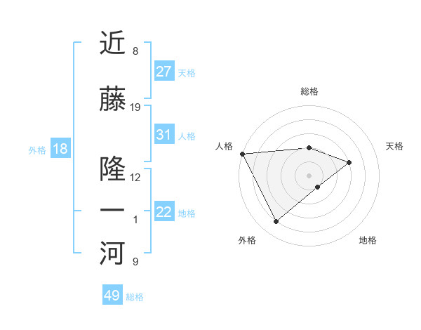 近藤 隆一河さんを姓名の画数から五運を鑑定