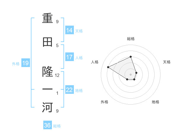 重田 隆一河さんを姓名の画数から五運を鑑定