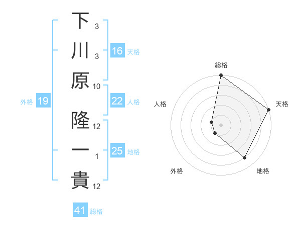 下川原 隆一貴さんを姓名の画数から五運を鑑定