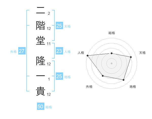 二階堂 隆一貴さんを姓名の画数から五運を鑑定