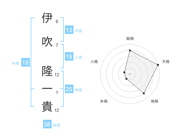 伊吹 隆一貴さんを姓名の画数から五運を鑑定