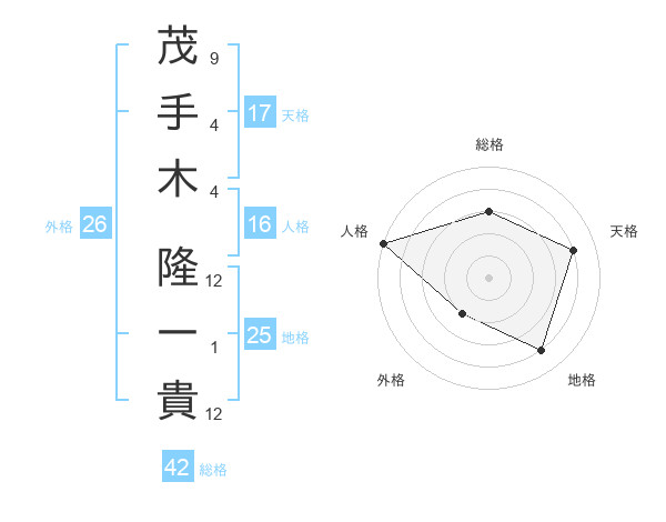 茂手木 隆一貴さんを姓名の画数から五運を鑑定