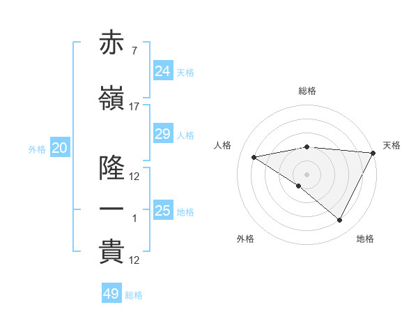 赤嶺 隆一貴さんを姓名の画数から五運を鑑定