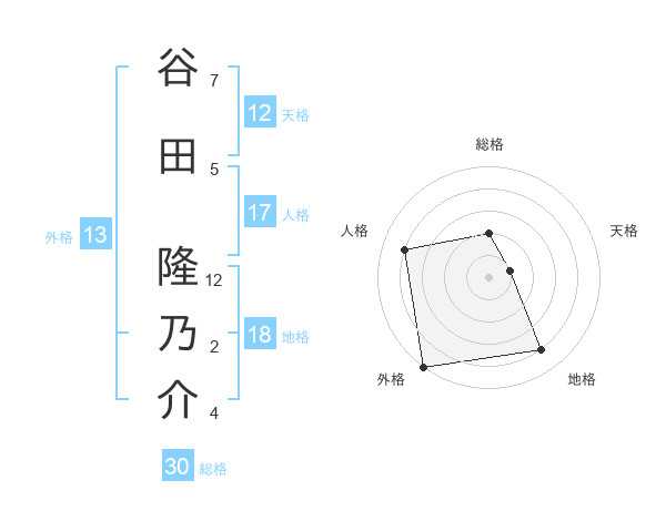 谷田 隆乃介さんを姓名の画数から五運を鑑定