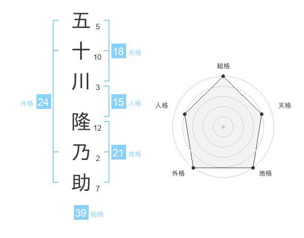 五十川 隆乃助さんを姓名の画数から五運を鑑定