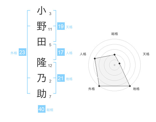 小野田 隆乃助さんを姓名の画数から五運を鑑定