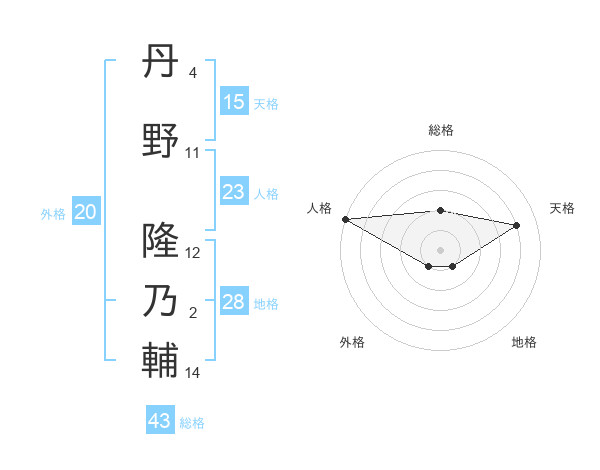 丹野 隆乃輔さんを姓名の画数から五運を鑑定