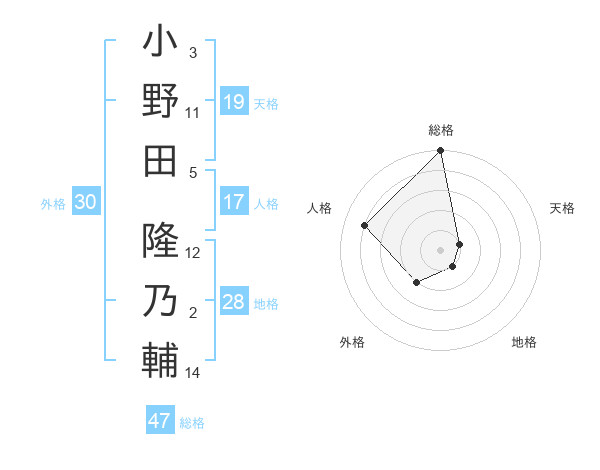小野田 隆乃輔さんを姓名の画数から五運を鑑定