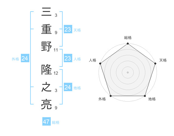 三重野 隆之亮さんの総格は47画の5点!