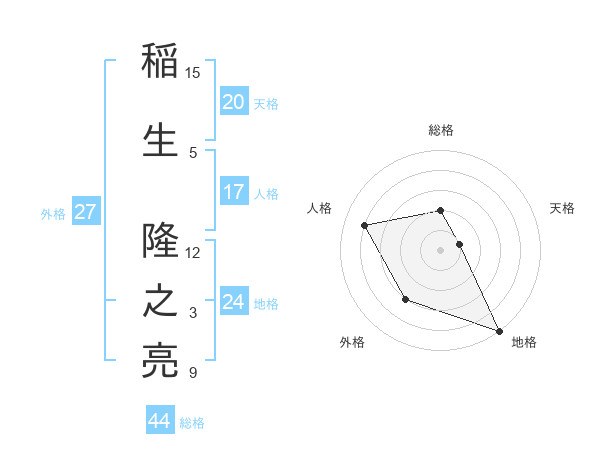 稲生 隆之亮さんを姓名の画数から五運を鑑定