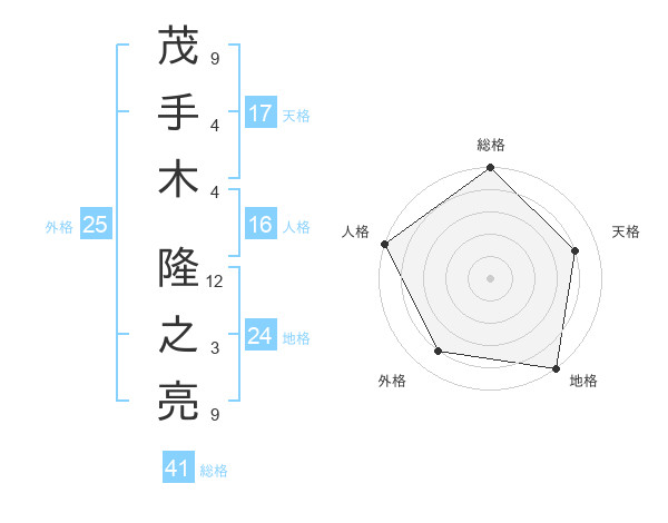 茂手木 隆之亮さんを姓名の画数から五運を鑑定