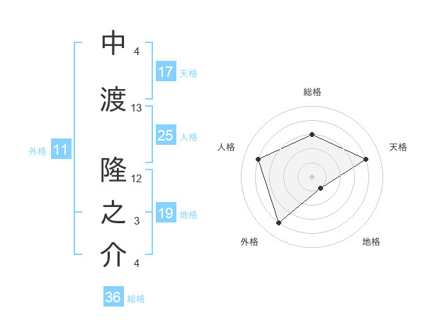 中渡 隆之介さんを姓名の画数から五運を鑑定