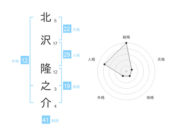 北沢 隆之介さんを姓名の画数から五運を鑑定